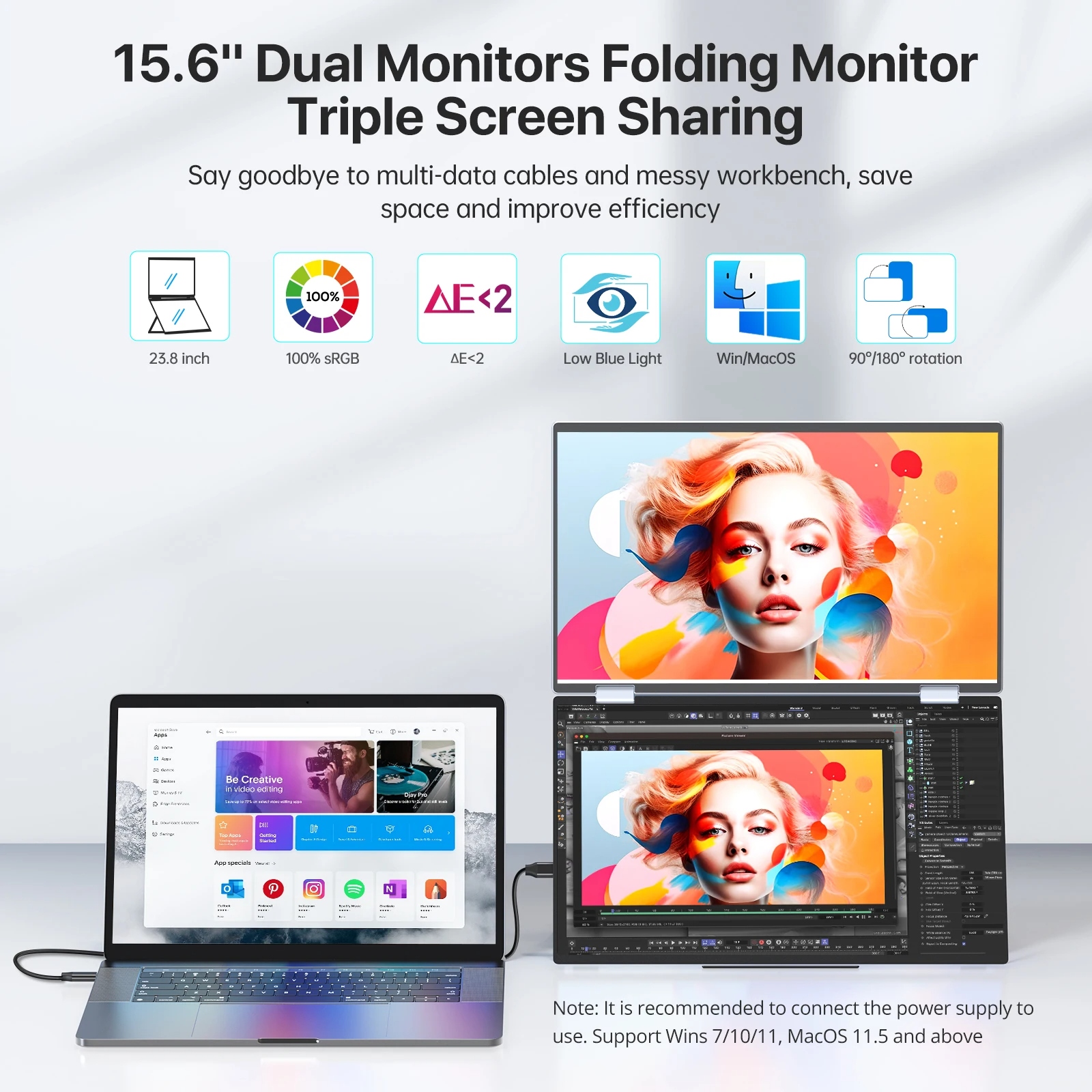 【Design ergonomic, spațiu de lucru actualizat】Monitorul dublu stivuit de 15,6„ vă extinde spațiul de lucru la 23,8”, oferind o zonă vizuală mai mare. Dispunerea sa verticală minimizează derularea și schimbarea paginii, reducând oboseala ochilor și a gâtului. Ecranul IPS mat, gama de culori 100% sRGB și ΔE<2 garantează reproducerea exactă a culorilor. Funcțiile anti-orbire, flicker-free și de îngrijire a ochilor asigură o vizionare prelungită și confortabilă.