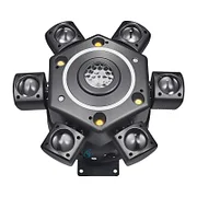 Dispozitivul utilizează un mecanism oscilant cu 6 brațe, fiecare rotindu-se independent (acoperind de obicei 180°-360°), echipat cu surse laser de înaltă intensitate. Cadrul metalic și lentilele din acrilic sunt adesea completate cu benzi LED RGB, creând un impact vizual dinamic și high-tech.