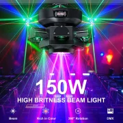 Yiflamefly 150W cu cap mobil pentru DJ adoptă o sursă de lumină de mare putere de 150W, oferind luminozitate puternică și efect de proiecție clar, potrivite pentru scene mari, petreceri sau cluburi de noapte și alte ocazii.